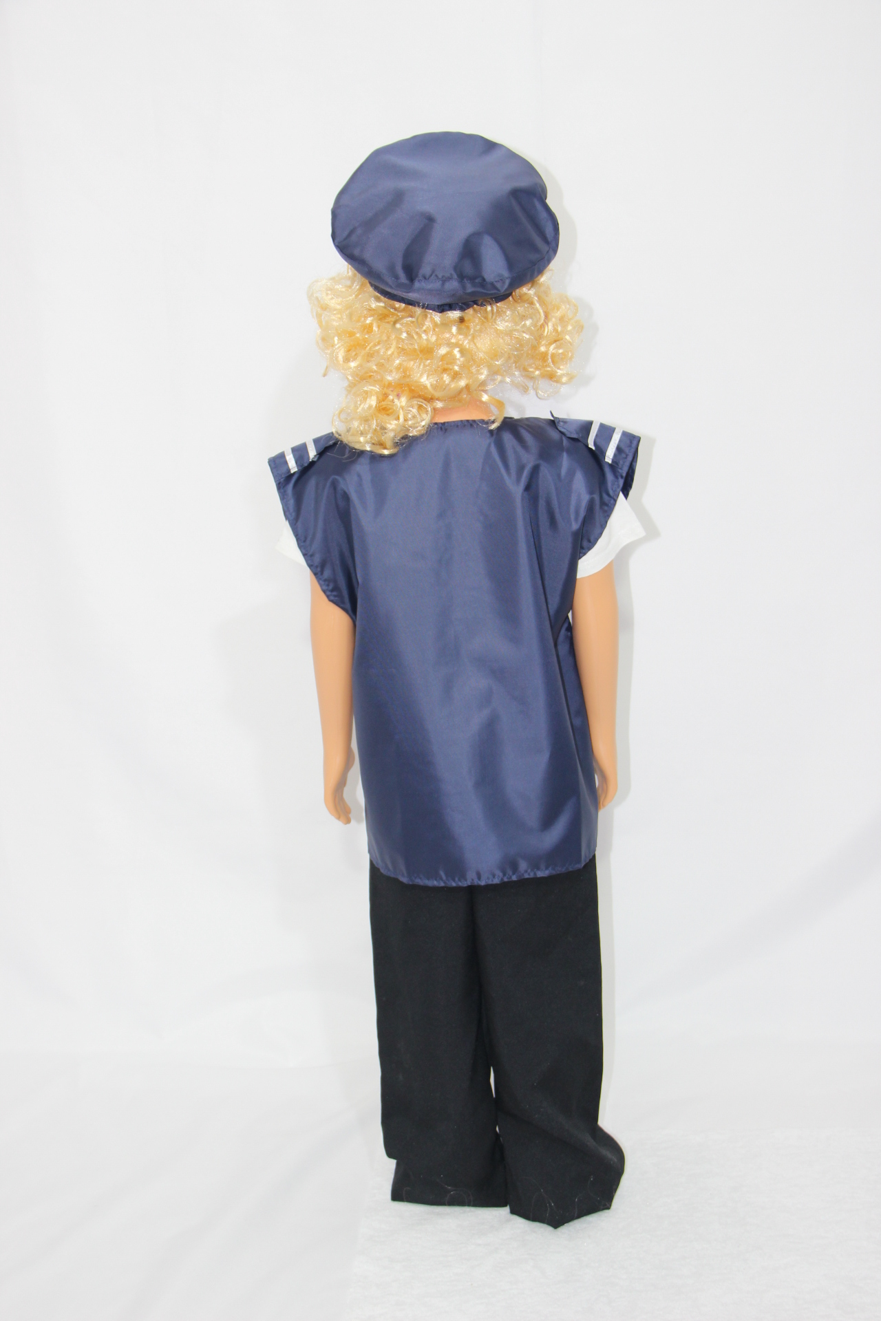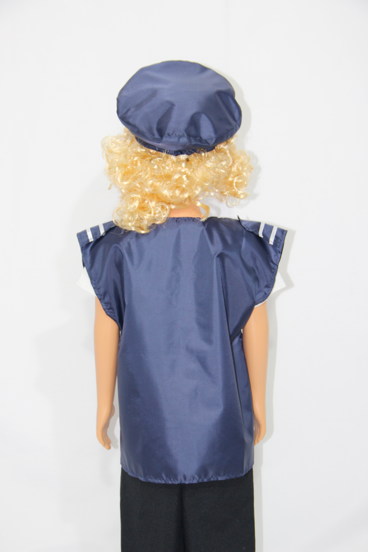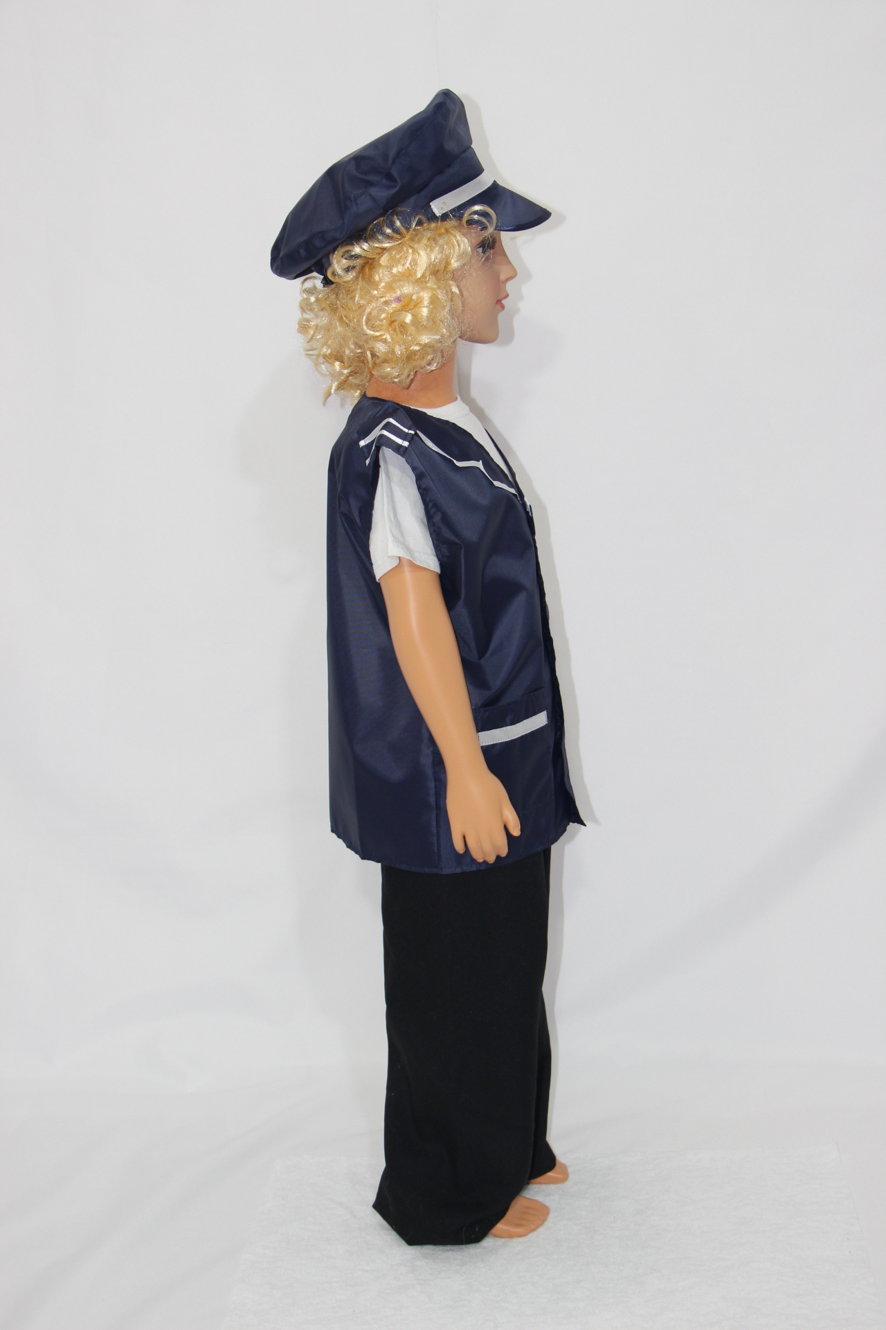 Комплект включает в себя жилет и фуражку, которые выглядят, как настоящие. Полиэстер в составе материала делает одежду износостойкой, позволяет ей выдерживать даже самую активную эксплуатацию.