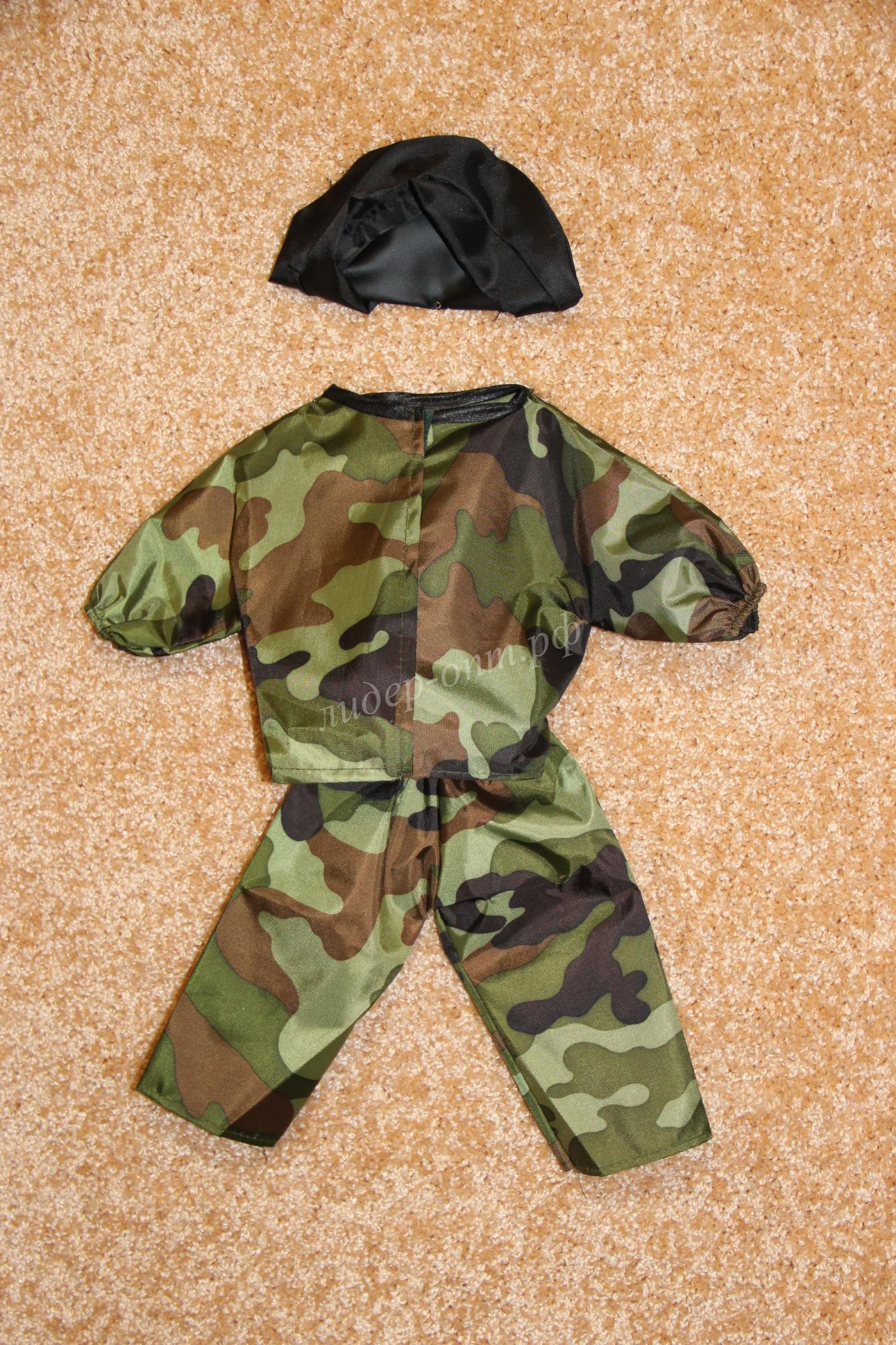 Камуфляжная расцветка штанов и куртки делает костюм немарким и похожим на настоящий. Черная шапочка дополняет комплект и делает образ военного завершенным. 100% полиэстер прочный и износостойкий. Он прослужит долгое время, сохраняя изначальные форму и цвет, хорошо отстирывается и не мнется.
