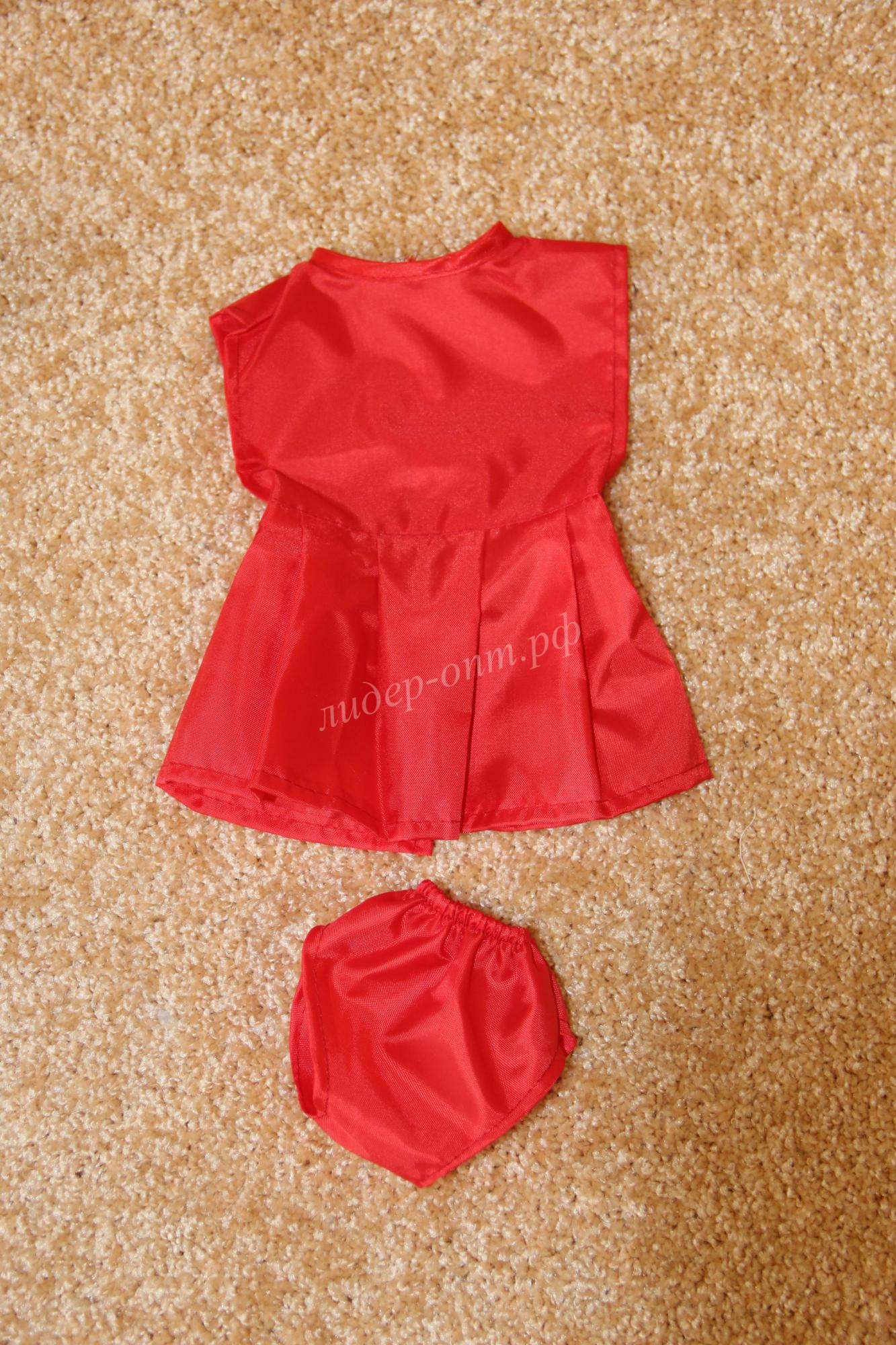 Красное летнее платье для куклы из полиэстера рассчитано на долгую эксплуатацию. Материал хорошо переносит стирки при невысокой температуре воды, не мнется, долгое время не теряет форму и цвет. В комплекте с платьем для куклы идут трусики такого же красного цвета. Одежда подходит для кукол ростом 40 - 45 см.