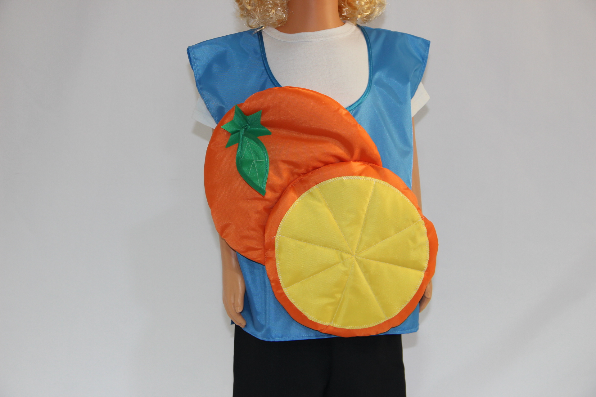 Красочный и нарядный детский жилет Апельсин предоставляет ребенку свободу движения. Под него можно надеть любую одежду, в которой малышу будет удобно играть свою роль в постановке. Полиэстер, из которого сделан жилет, неприхотлив в уходе, износостоек, выдерживает множество стирок, не теряя при этом форму и цвет. Материал долго будет сохранять свою красоту даже при активной эксплуатации.