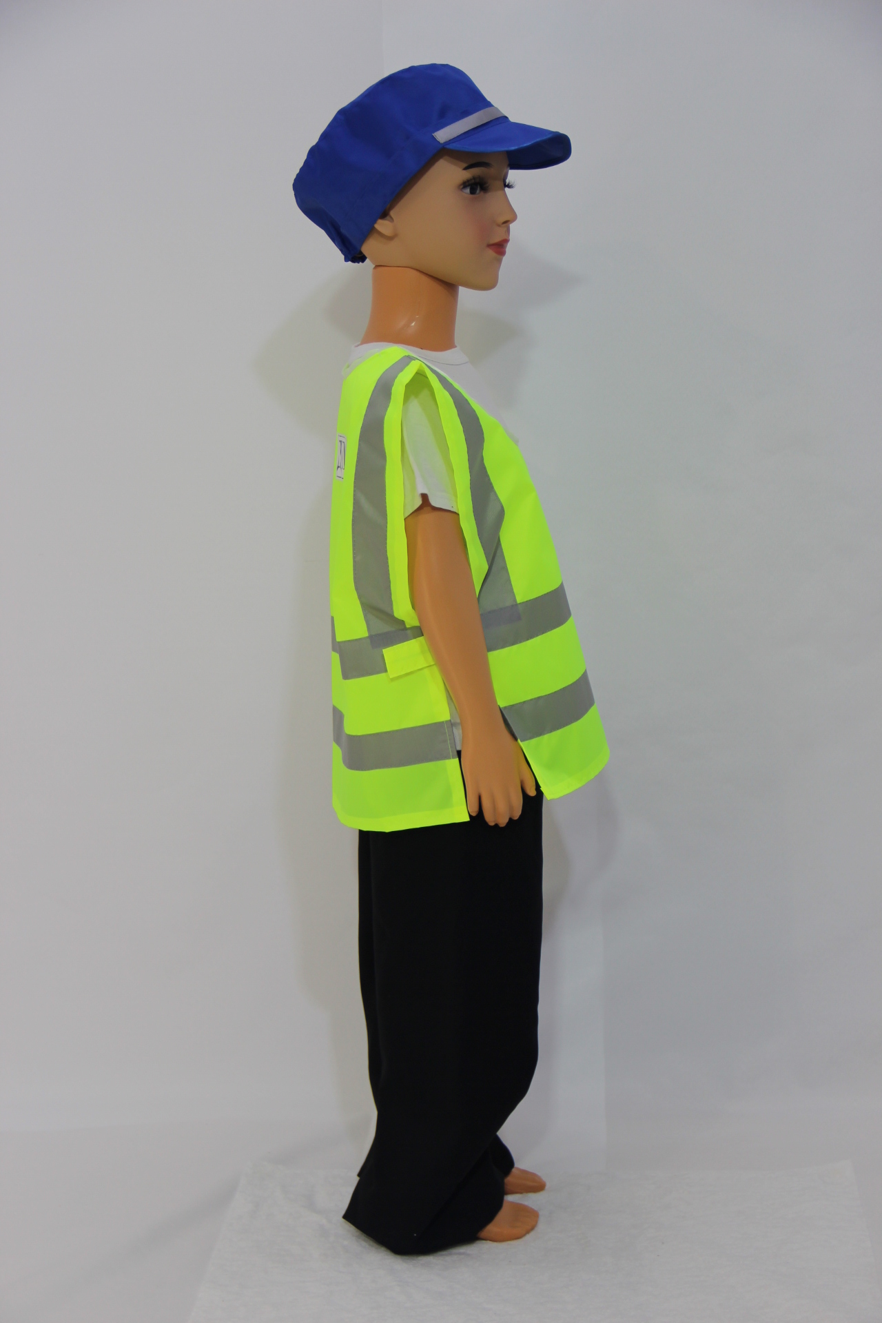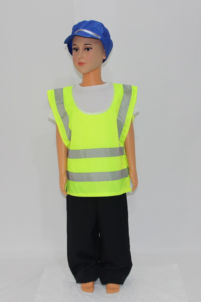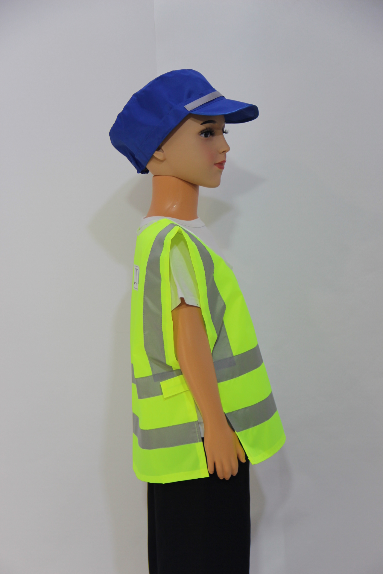 Яркий комплект включает в себя жилет и кепку, украшенные светоотражающими элементами. Полиэстер в составе материала делает его прочным и износостойким, он способен выдержать многие игры и не потерять свою яркость.