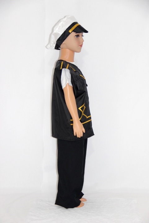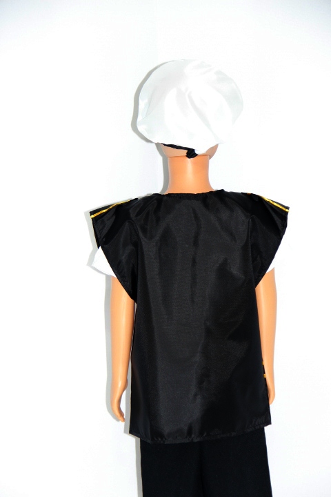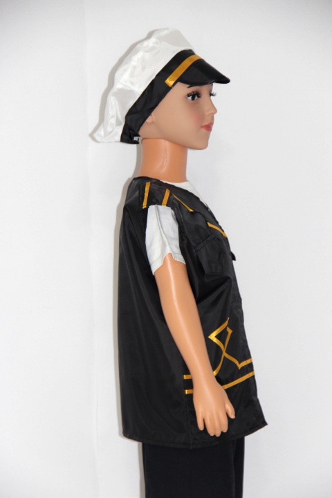 Костюм состоит из жилета и фуражки. Жилет свободного кроя без рукавов предоставляет максимальную свободу движения, поэтому даже самая активная игра будет комфортной для ребенка. Одежда сделана из прочного и износостойкого полиэстера, который выдерживает долгую и частую эксплуатацию, при этом не теряет своего цвета и формы, долгое время выглядит, как новый.