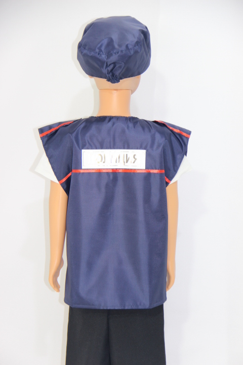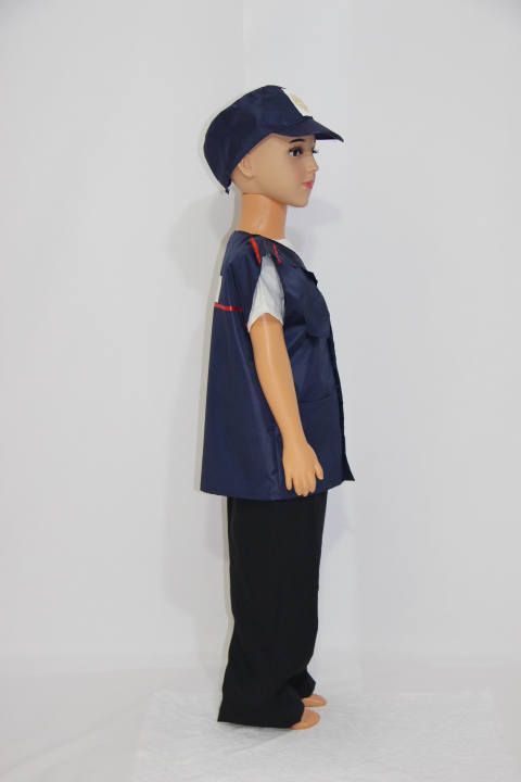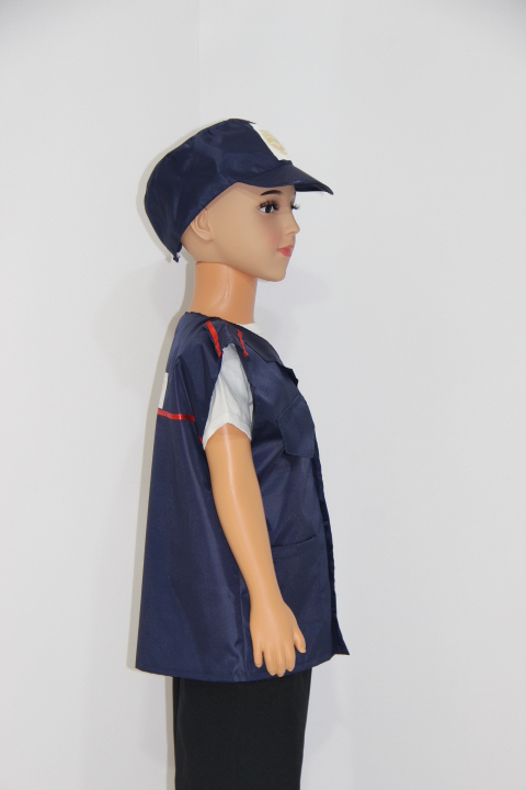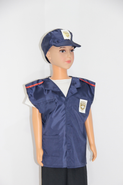 Комплект включает в себя жилет и фуражку темно-синего, немаркого цвета. Использовать его можно не только для игр, но и для театральных постановок в детском саду или начальной школе. Прочный полиэстер выдержит даже самую частую эксплуатацию, сохраняя свой изначальный вид долгое время.