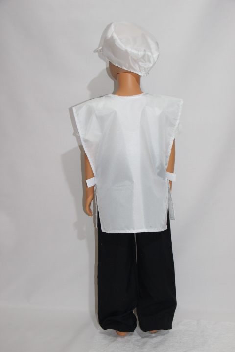 Белый цвет наряда выглядит торжественно. Облачаясь в специальный костюм, малыш почувствует всю значимость его трудов и более ответственно отнесется к любому заданию.