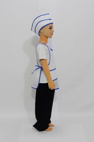 Детский костюм продавца поможет ребенку лучше вжиться в роль, ощутить важность своей профессии. Комплект включает в себя фартук и шапочку: в такой костюм можно легко и быстро переодеться, что не вызовет затруднений у малыша. Одежда не сковывает движения, поэтому ничто не будет отвлекать ребенка от его игры.