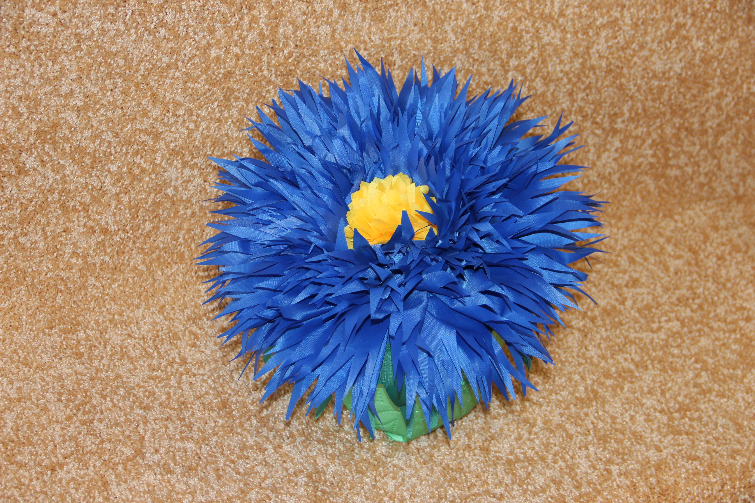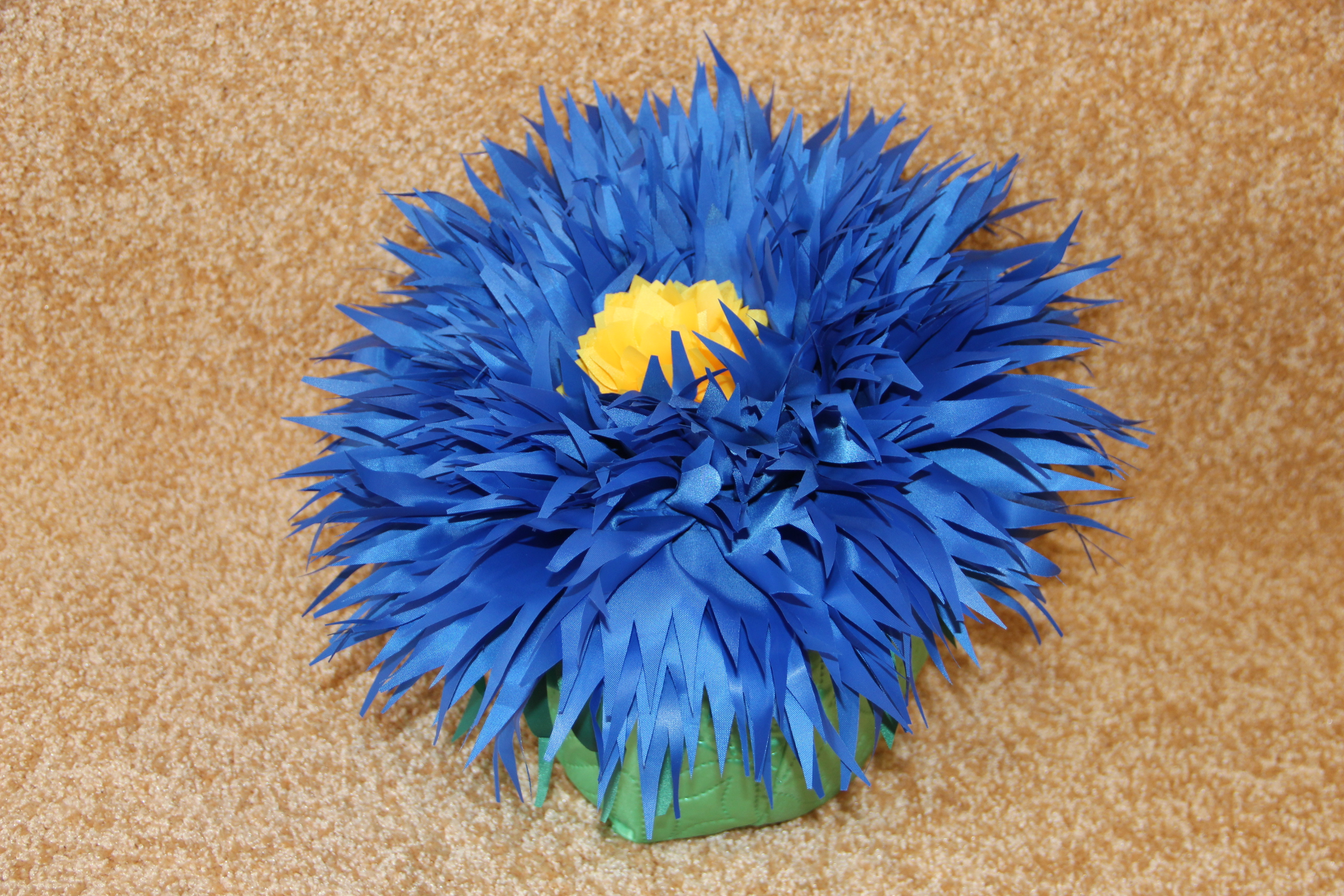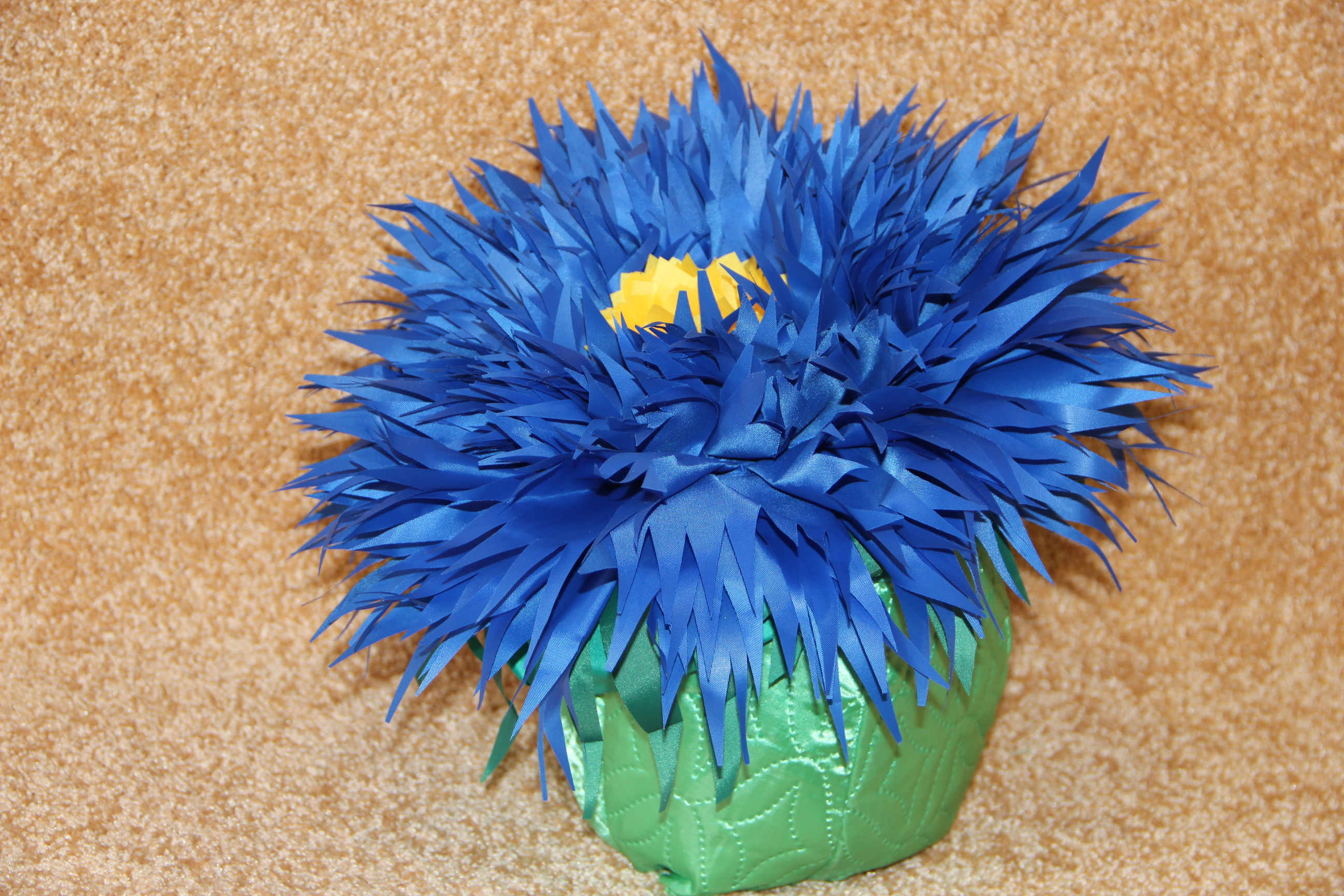 Детская шапка в виде цветка василька для детского сада сделана из прочного и износостойкого полиэстера. Это значит, что аксессуар прослужит долгое время, не потеряв своей изначальной красоты. Шапка хорошо держит форму. Яркие цвета и блестящая ткань придется по вкусу малышу, и он с удовольствием будет носить этот костюм.