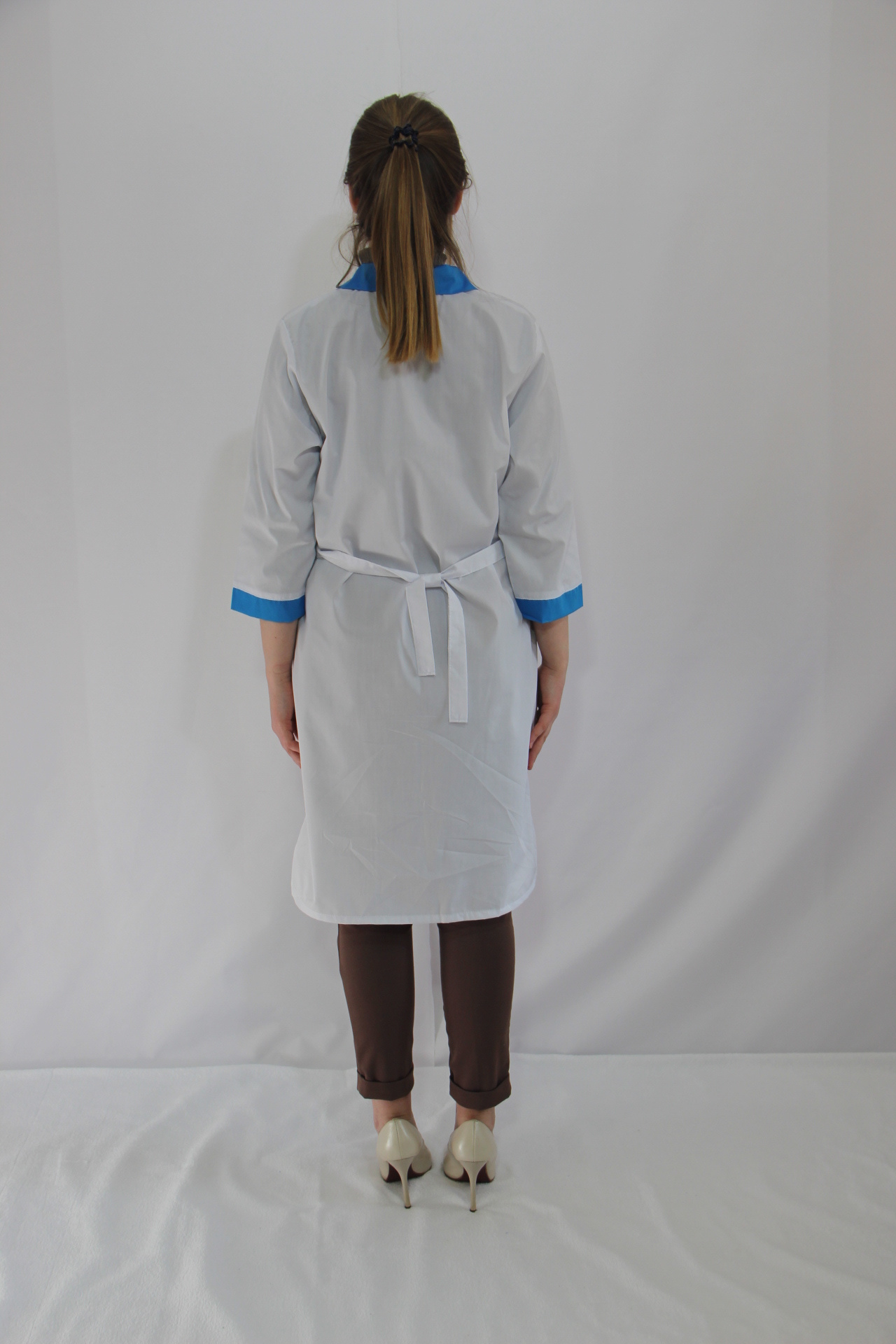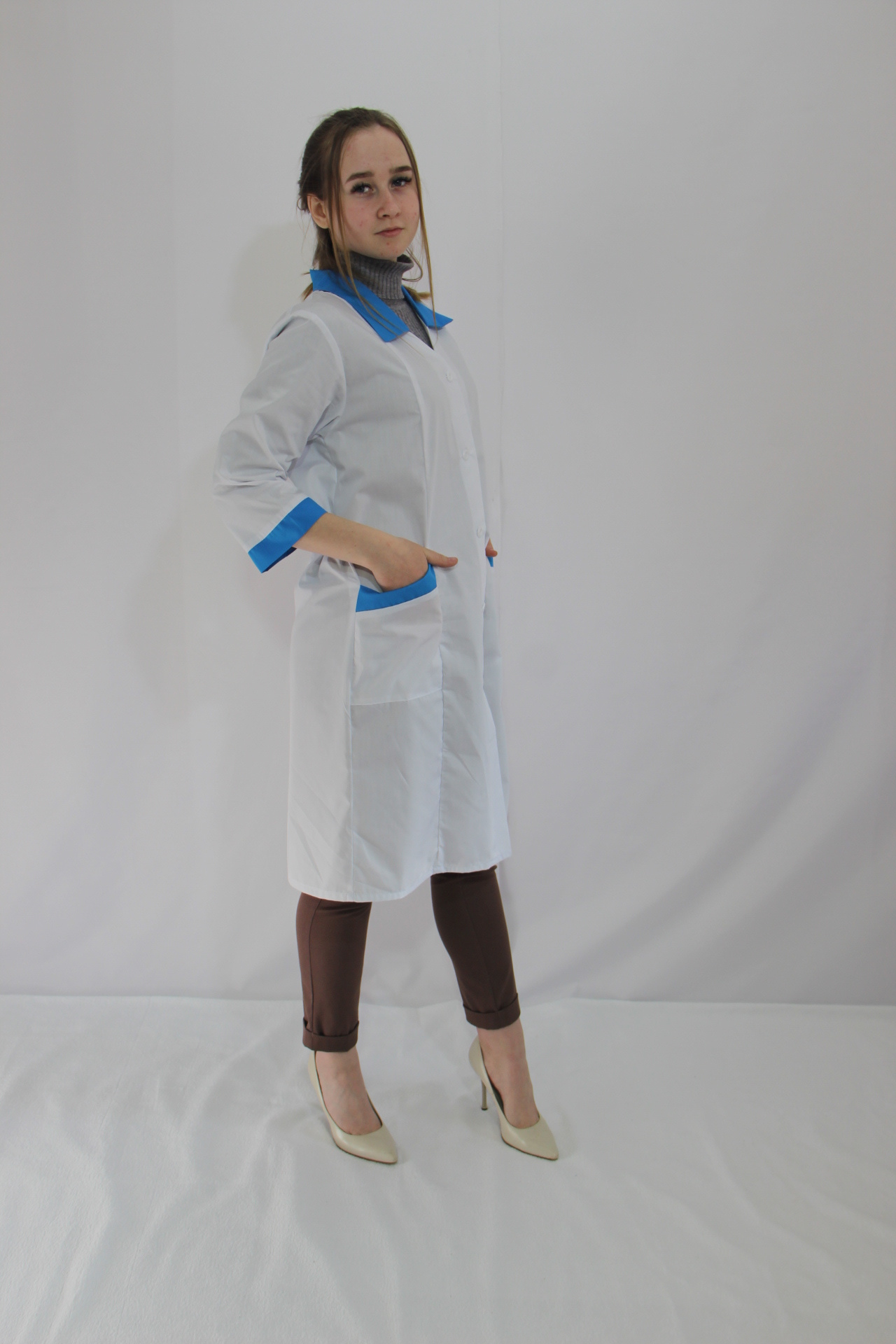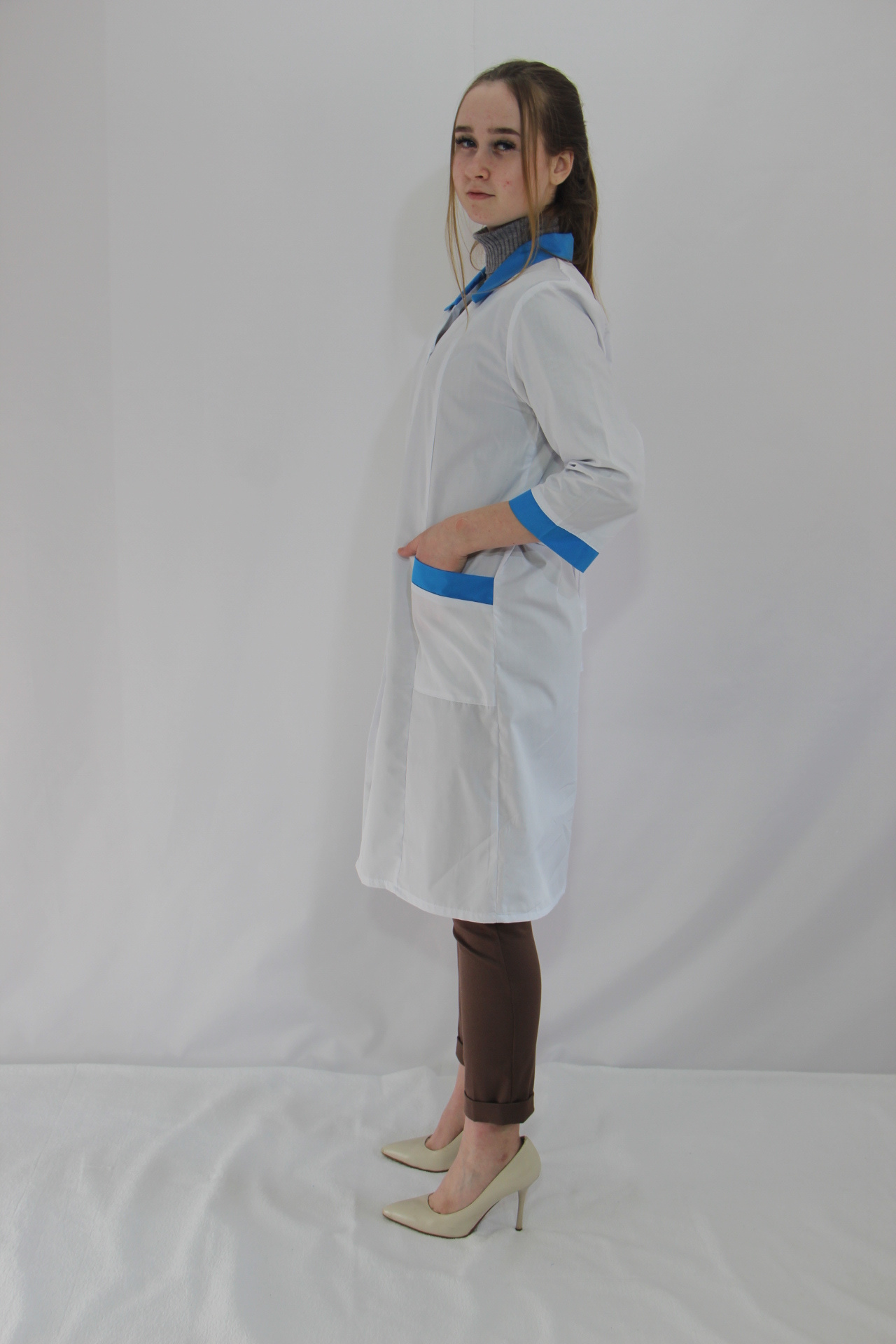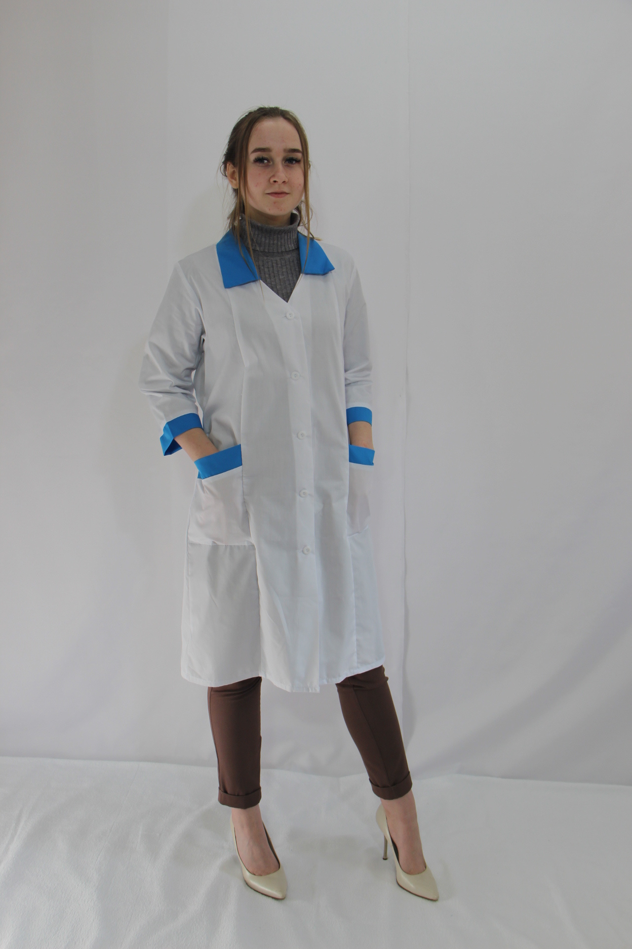 Женский медицинский халат сделан из ткани тиси, которая сочетает в себе все преимущества натурального хлопка и синтетики. В результате получается прочный, долговечный и в то же время легкий материал, который отлично держит форму и сохраняет цвет даже в ходе активной эксплуатации. Он пропускает воздух к коже, позволяя ей дышать, и хорошо впитывает влагу, отводя пот от тела. Поэтому в халатах из ткани тиси очень комфортно работать даже долгое время.