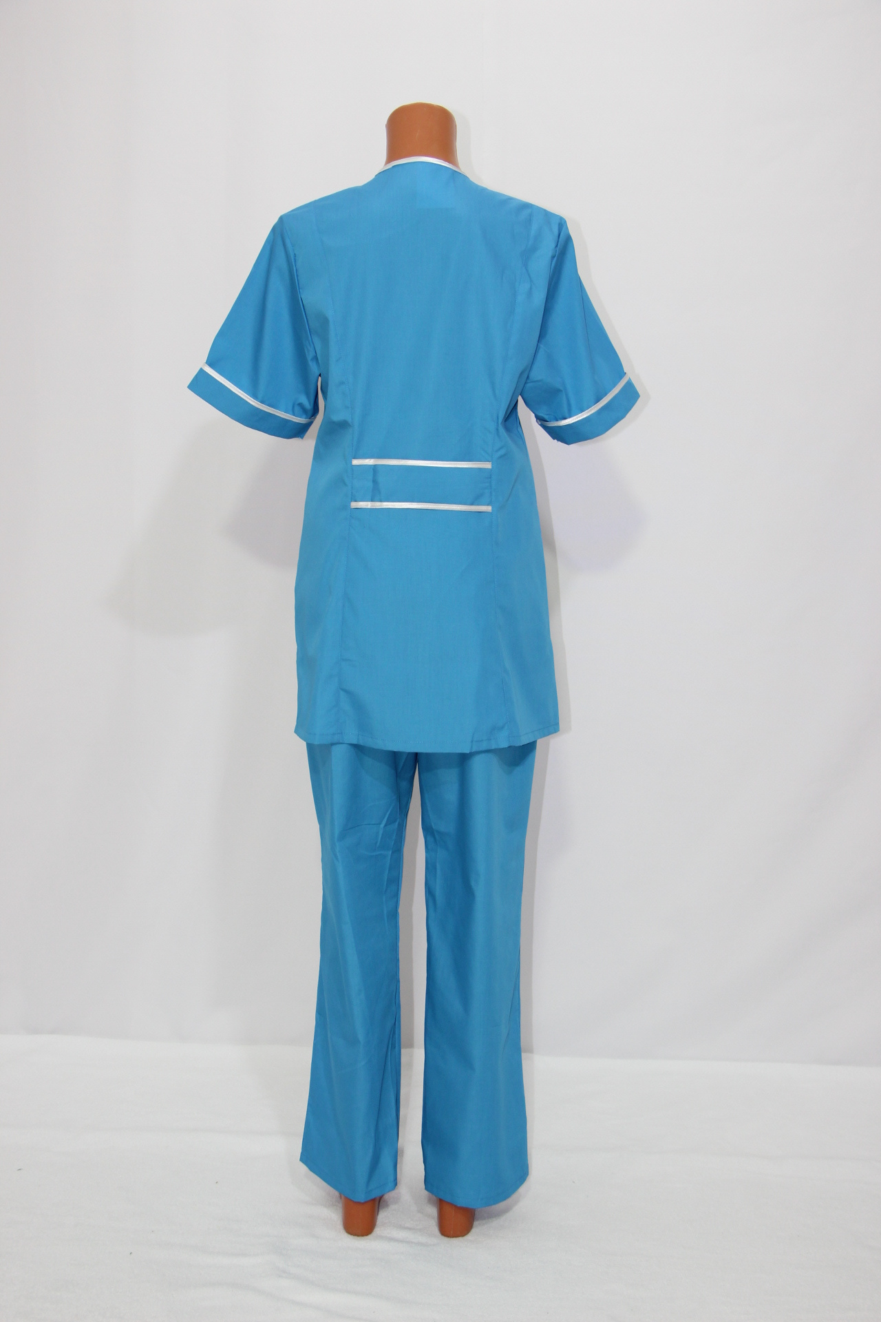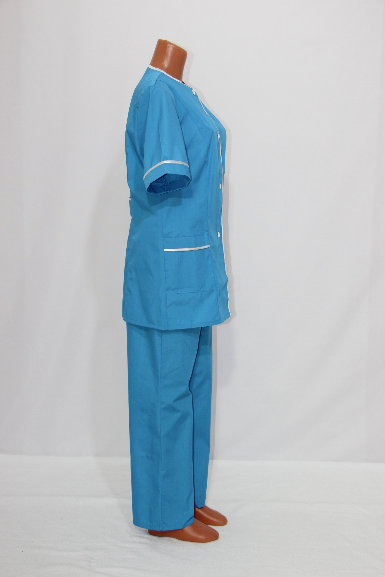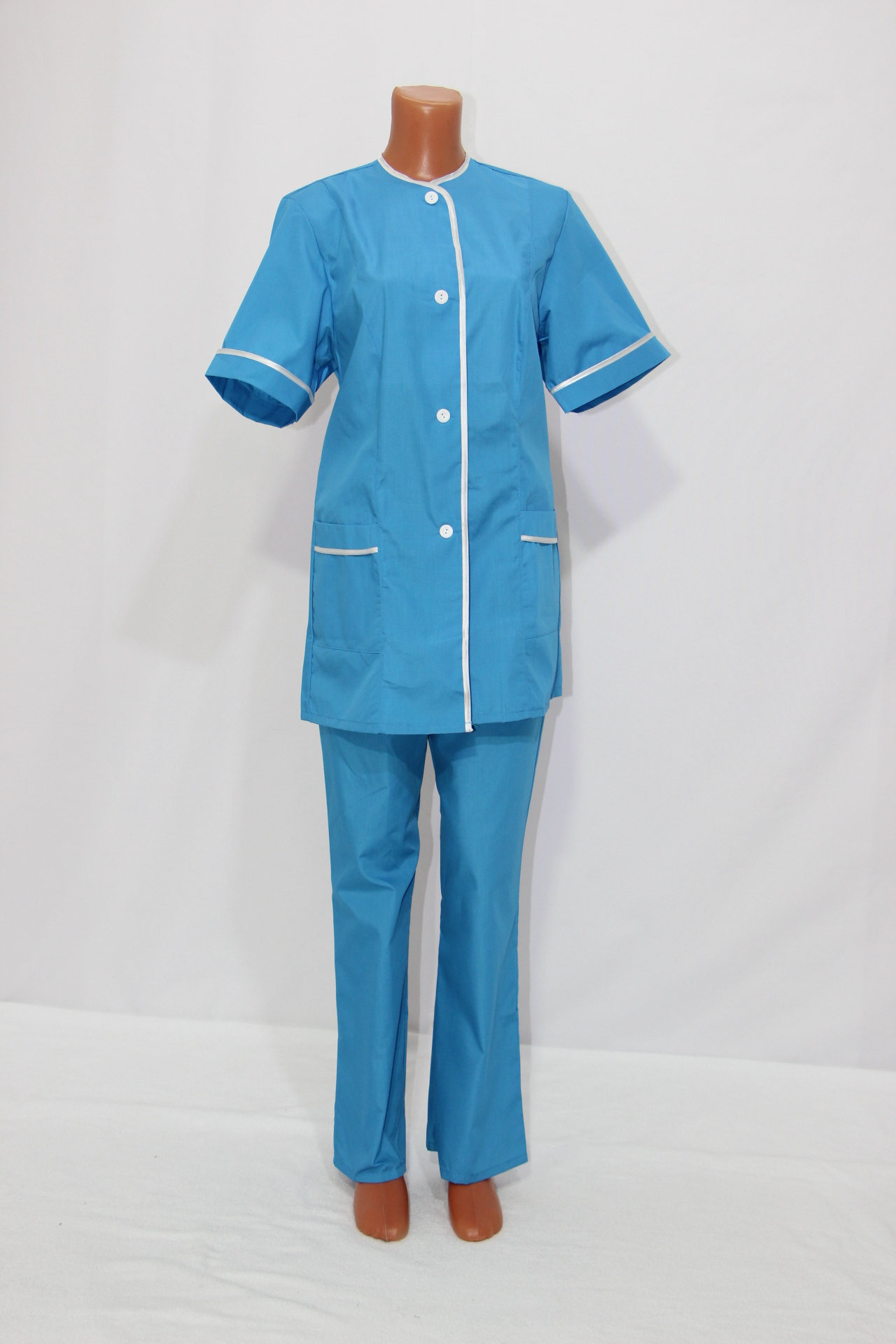 Женский брючный костюм медика сшит из практичной и комфортной в носке ткани тиси. Эта смесь натурального хлопка и синтетического полиэстера может похвастаться прочностью, устойчивостью к износу и простотой в уходе. Она хорошо отстирывается, быстро сохнет и не мнется, не теряет форму и цвет даже в ходе активной эксплуатации. При этом хлопок в составе материала делает его дышащим, приятным на ощупь, хорошо отводящим влагу от тела.