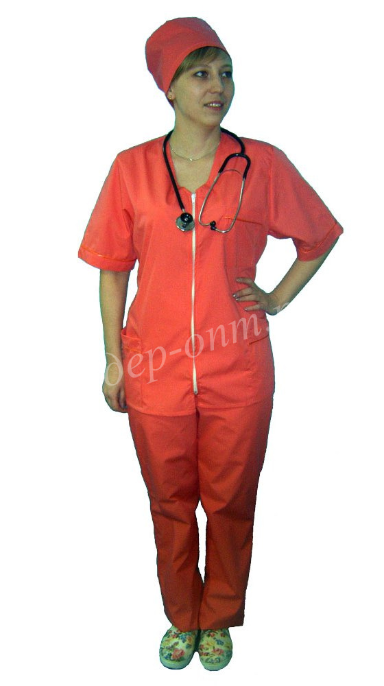 Женский медицинский костюм сшит из ткани тиси – смеси хлопковых и синтетических нитей. За счет первых материал дышит и хорошо отводит влагу от тела, он приятен на ощупь и гипоаллергенен. За счет синтетики ткань получается прочной, износостойкой и долговечной. Она хорошо держит форму, легко отстирывается и даже допускает кипячение, не теряет цвет после долгого использования.
