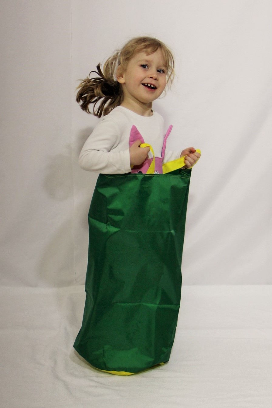 Соревнования по прыжкам в мешках можно проводить на свежем воздухе, на мягкой траве - полиэстер хорошо отстирывается и способен выдержать множество стирок.